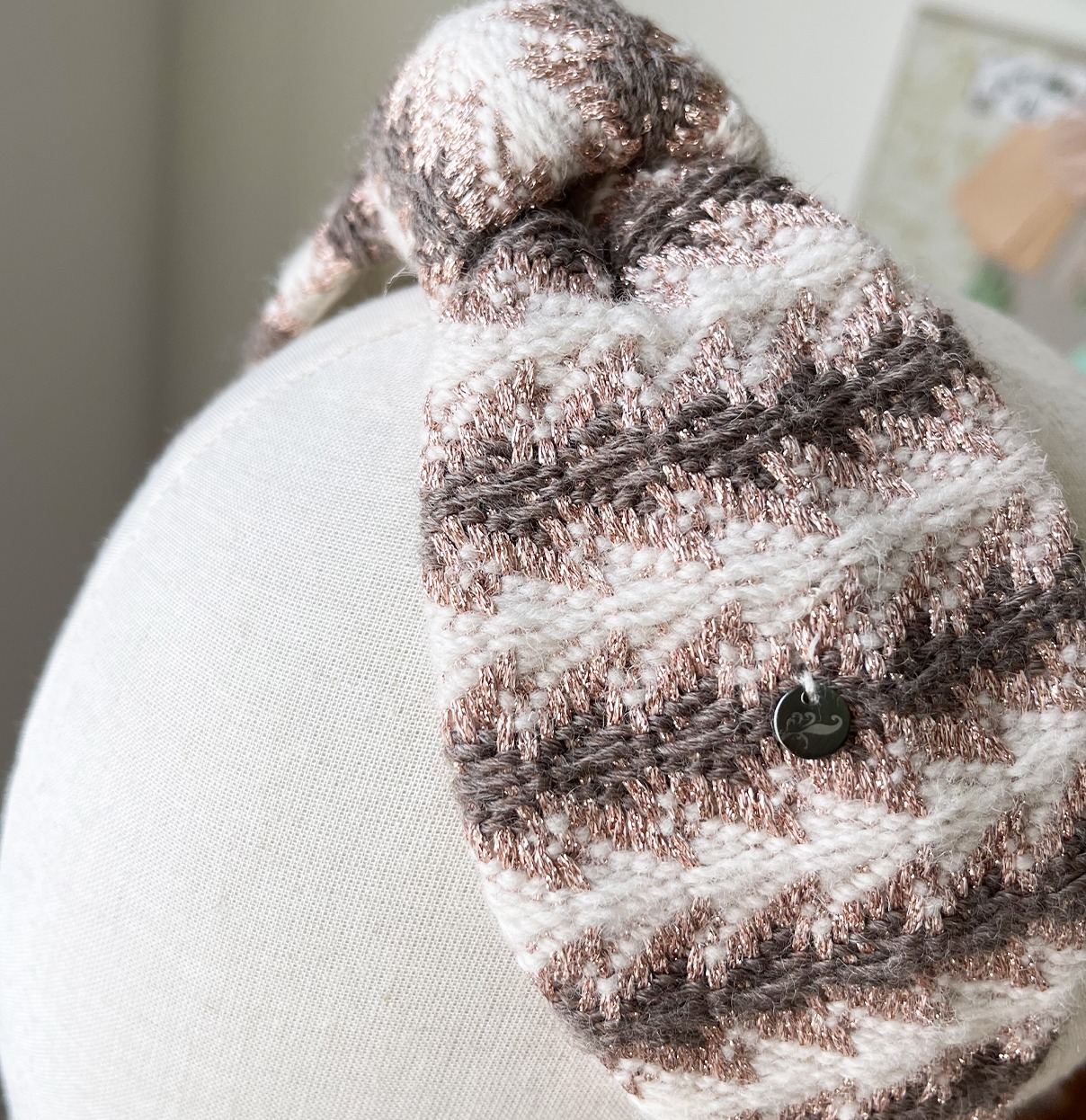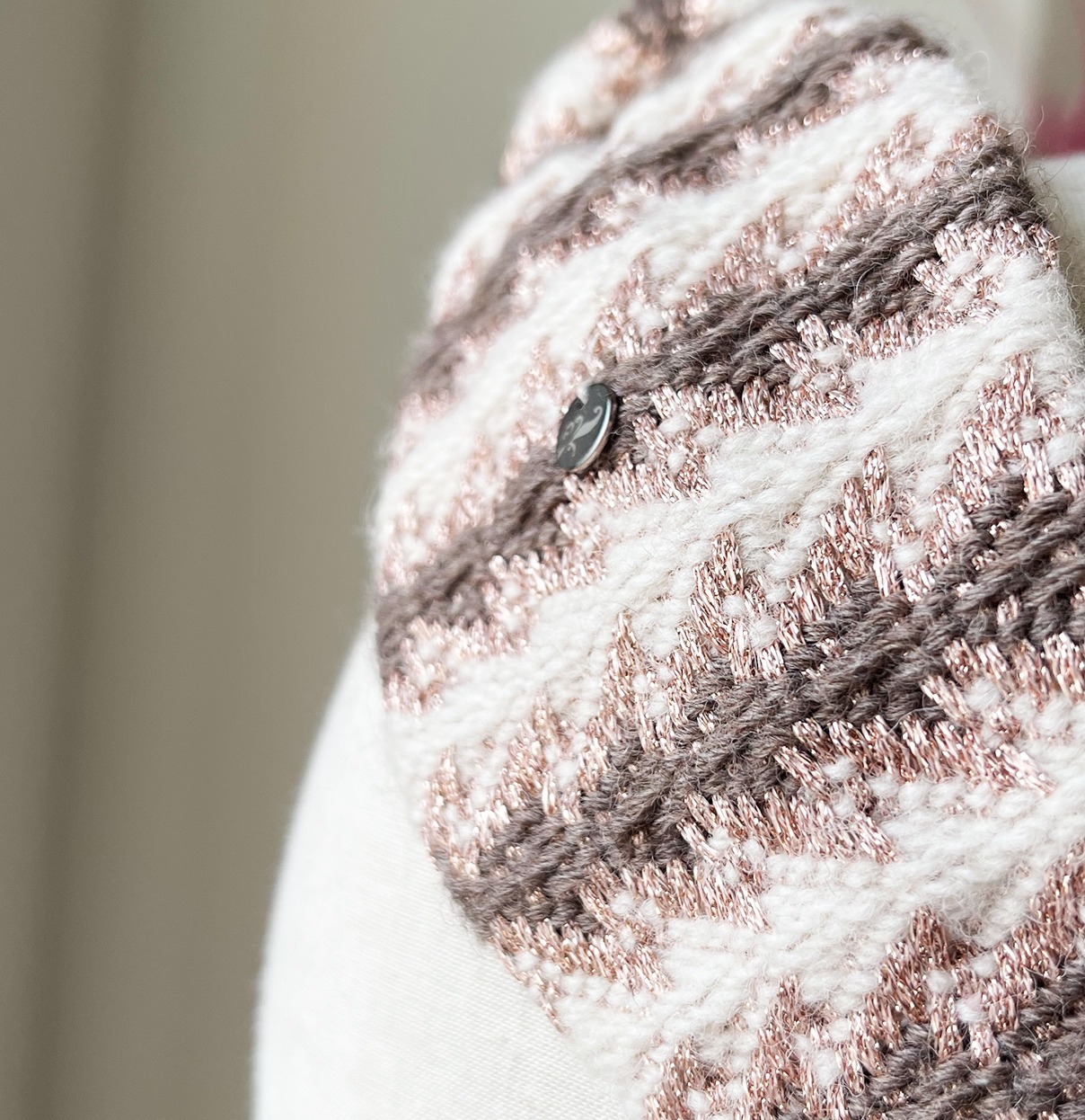 ● Colore base: bianco candido + nocciola + filati lurex oro rosa