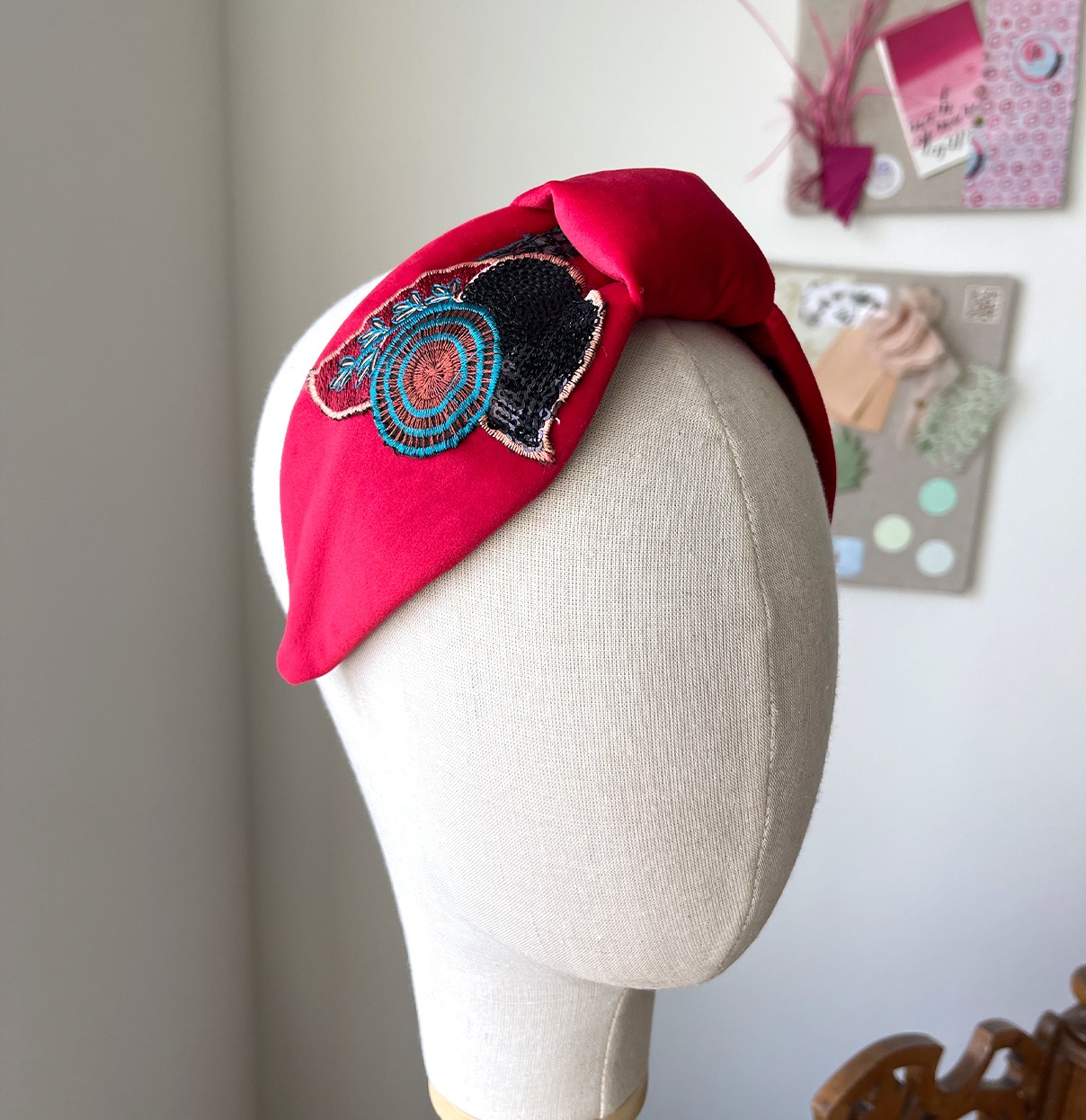 Originalissimo cerchietto a fascia in morbido velluto cinigliato caratterizzato dalla tonalità più calda dell’anno e impreziosito da un dettaglio unico, easy-chic, dal sapore retrò, leggerissimo e… very, very sparkling!