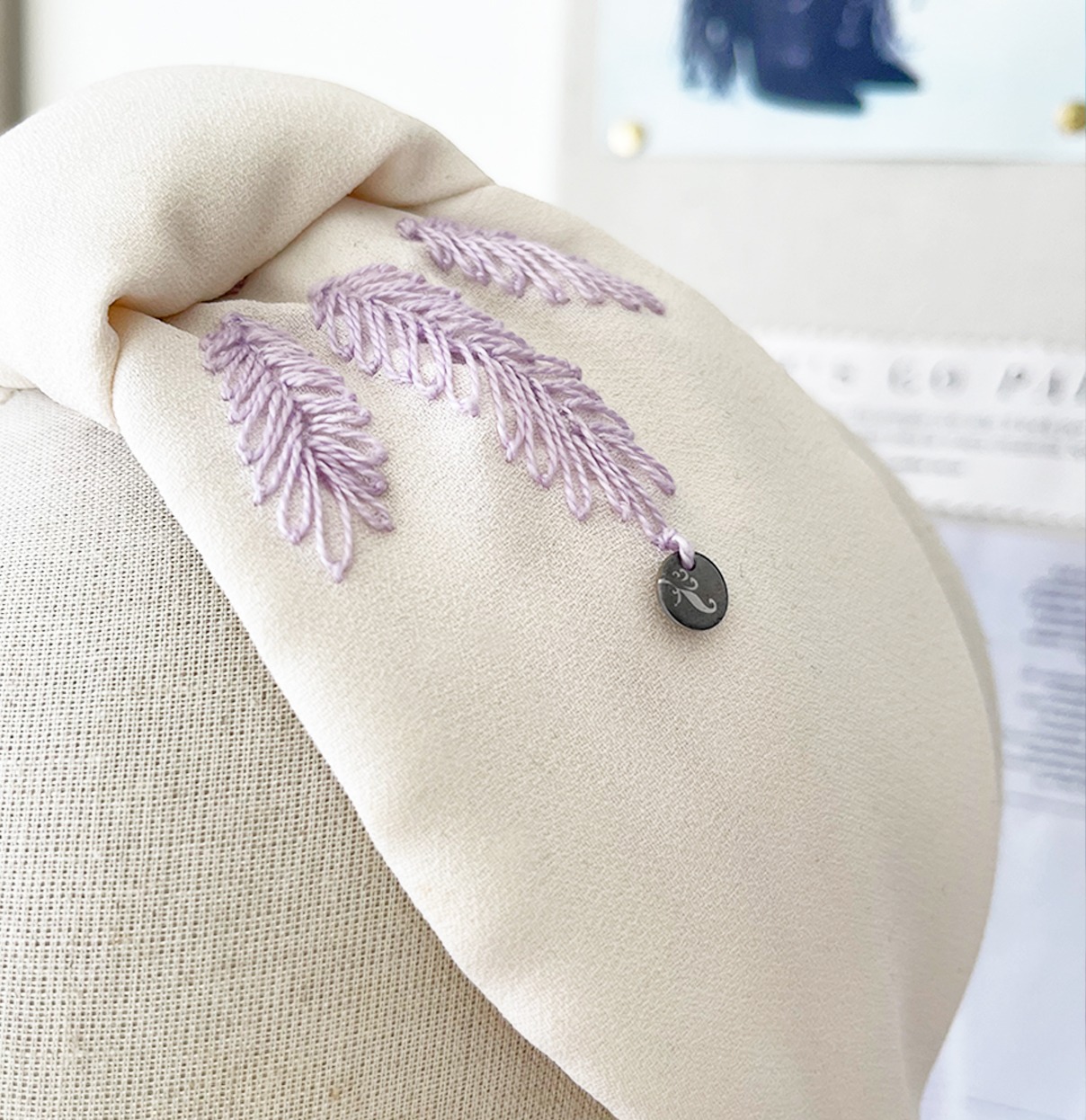 ● Colori: bianco antico + ricamo eseguito a mano – lilla tenue