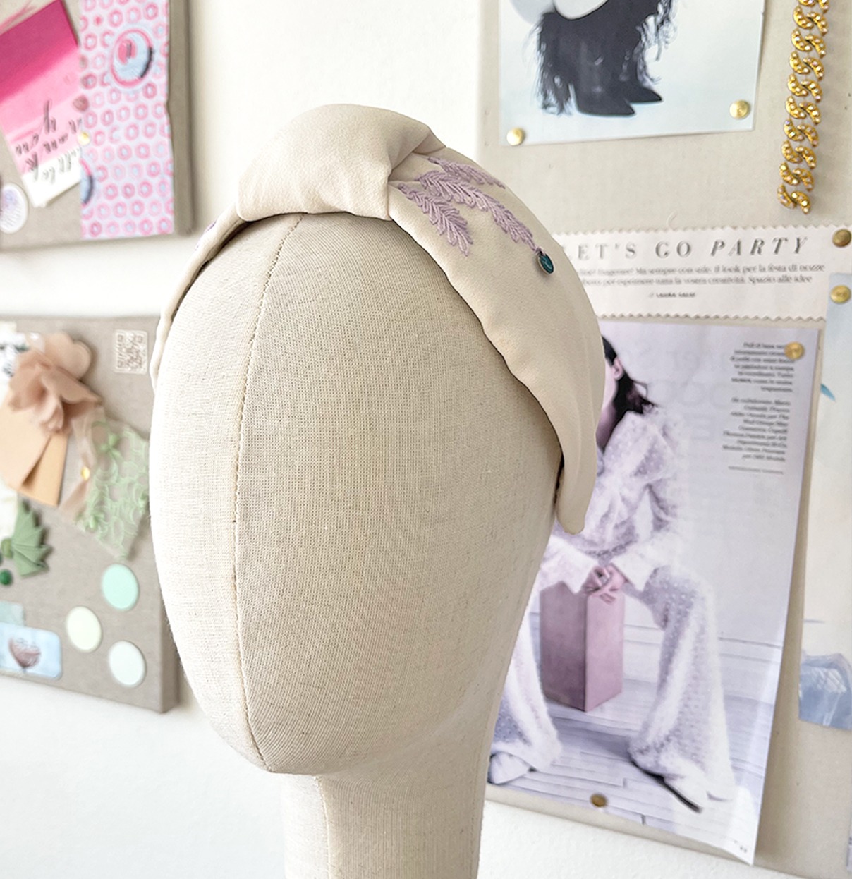 Splendido cerchietto a fascia caratterizzato da pura seta, sensazioni di sana libertà. Ricami dai racconti preziosi, da mille e una notte!