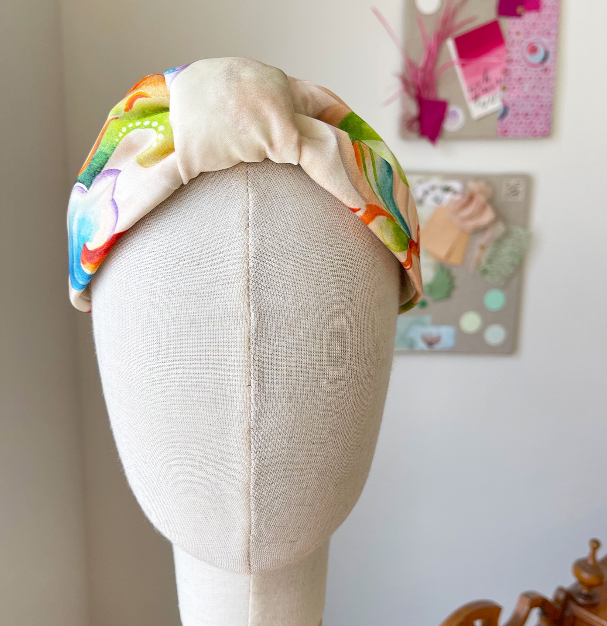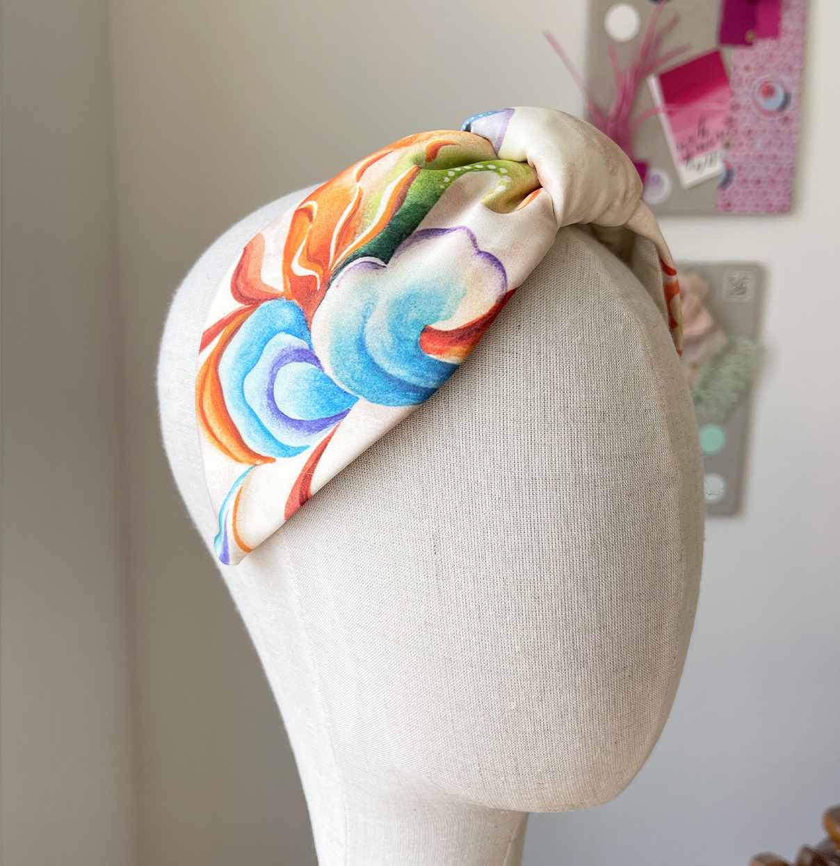 Splendido cerchietto a fascia in seta, modalità macro fiorita per le nostre corone primaverili!